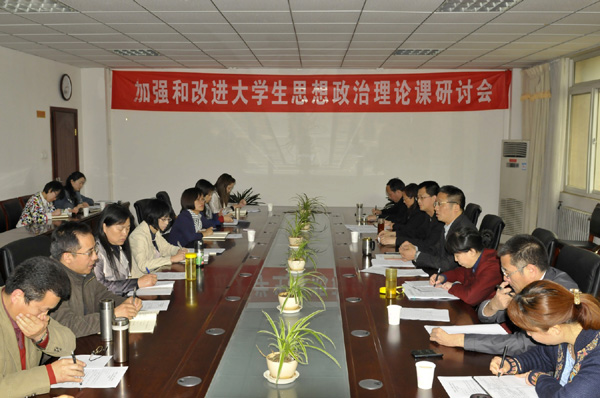 为了提高大学生思想政治课的思想性、实效性和针对性,探讨十八大后大学生思想政治课面临的新形势、新内容、新举措。4月23日下午,永利官网在行政楼203会议室召开了加强和改进大学生思想政治理论课研讨会。会议由校党委副书记刘志刚主持。党委宣传部、学生工作部、研究生工作部、团委、教务处、教学评估中心、政法学院相关负责人,思想政治教育教学部各教研室主任参加会议。 各部门负责人就加强师资队伍建设,增强教学效果,提高课程教学的质量和层次,培育高质量的教改项目和教学成果奖,探索政治理论课主阵地和第二课堂的有效衔接途径等方面进行了热烈的交流,提出了很多有建设性的意见和建议。 刘志刚副书记提出要切实加强大学生思想政治课的建设水平,要求相关部门积极整合资源、搭建平台,将学生工作与思政课教学相结合,将课堂教学与实践教学相结合,进一步深化课程改革,提升教育教学质量,不断满足十八大召开对大学生思想政治理论课提出的新要求,满足学生成长成才的新需求,使十八大精神能够真正的入脑入心。(思想政治教育教学部/文 宣传部/图)
