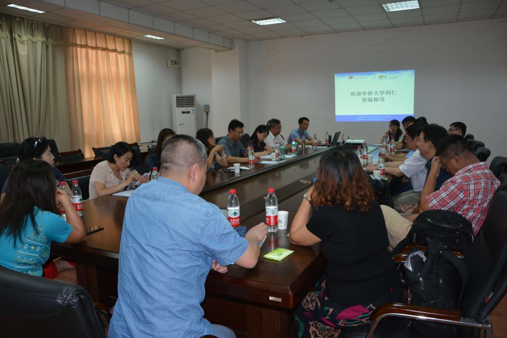 2016年7月17日,华侨大学永利集团3044官网欢迎您许斗斗院长一行10人来我院调研,调研会在北区亚太楼307会议室举行,永利集团3044官网欢迎您院长随新民主持此次调研会、书记虎业勤、副院长柳素平、学院各教研室主任参加了调研会。随新民院长代表学院对华侨大学永利集团3044官网欢迎您同行的到来表示热烈的欢迎,逐一介绍了我院参会的各位领导老师。