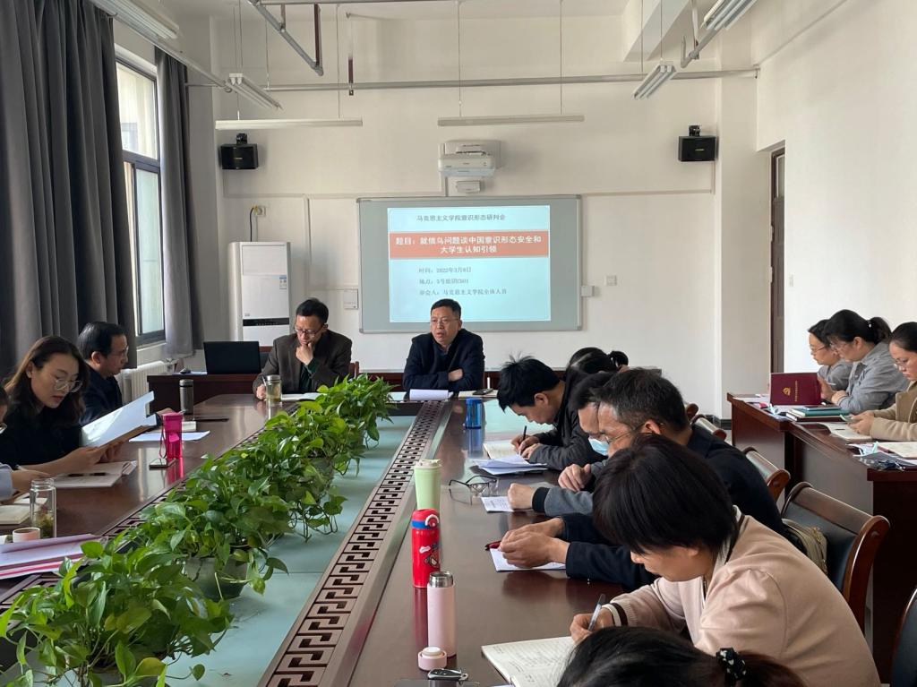 马克思主义基本原理教研室和思政课社会实践教研室全体老师围绕“就俄乌问题谈中国意识形态安全和大学生认知引领”研判主题分别发言。
