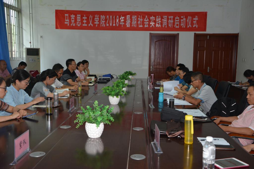 2018年7月3日下午,我院在镇泰楼101会议室举行暑期社会实践调研启动仪式,仪式由马院随新民院长主持,马院全体教职工参与了本场启动仪式。