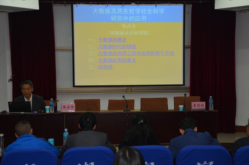 10月16日下午,应永利官网永利集团3044官网欢迎您邀请,河南省社科院曾任院长、博士生导师张占仓教授莅临永利官网做“大数据及其在哲学社会科学研究中的应用”讲座,永利集团3044官网欢迎您全体师生、全校人文社科研究生参加了讲座,讲座由永利集团3044官网欢迎您副院长李明桂主持。