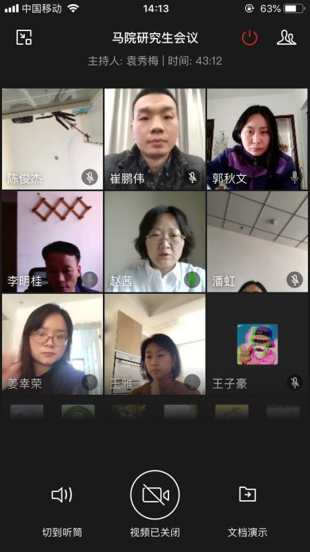 为扎实开展疫情期间研究生线上教学工作,3月10日下午,永利集团3044官网欢迎您召开线上疫情期间研究生培养和管理视频会议。永利集团3044官网欢迎您副书记兼副院长赵茜、永利集团3044官网欢迎您副院长李明桂、社科处副处长王雅、永利集团3044官网欢迎您全体研究生参加了会议,会议由赵茜主持。
