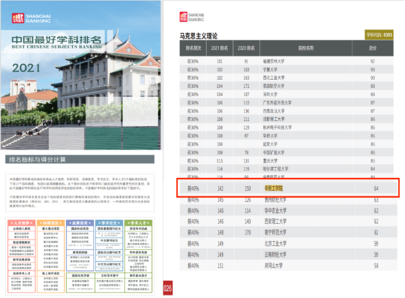 2021年10月25日,高等教育评价专业机构软科正式发布“2021软科中国最好学科排名”,排名榜单包括96个一级学科,各个学科排名的对象是在该一级学科设有学术型研究生学位授权点的所有高校,发布的是在该学科排名前50%的高校,共有486所高校的4992个学科点上榜。其中,马克思主义理论学科排名共有201所高校上榜,在河南省高校马克思主义理论学科中,我院马克思主义理论学科排名居第四位(前三名分别是郑州大学、河南师范大学和河南大学),完整排名名单如下。