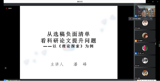 讲座中,潘教授以自己多年从事期刊论文的丰富经验,详细阐述了通过C刊选稿负面清单判断科研论文的优劣方法,深入浅出地和广大师生探讨了论文撰写的写作标准、评价标准以及审稿标准,介绍了论文写作和选稿标准之间的关系,提出了论文写作要注重创新思维,为永利官网师生就如何提升科研论文的含金量指明了方向。他以《理论探索》的选稿为例,详细介绍了学术期刊的审稿标准,指出好的学术期刊要训练科研素养,注重科研积累。潘教授从C刊选稿负面清单反映的问题类型及其提升指向为切入点,分别从论文撰写要正确对待政治性稿件,注重前沿和研究领域的稿件,论文写作中存在的致命“方法性内伤”,注重辨别中西方学术研究,排除侵权风险的稿件等五个方面出发,指出论文撰写过程中可能会遇到的问题和注意事项,指出研究领域的选择和撰写科研论文要从中国特色社会主义中汲取理论知识和实际经验,加强学术规范,不能盲目照搬西方的学术研究成果。