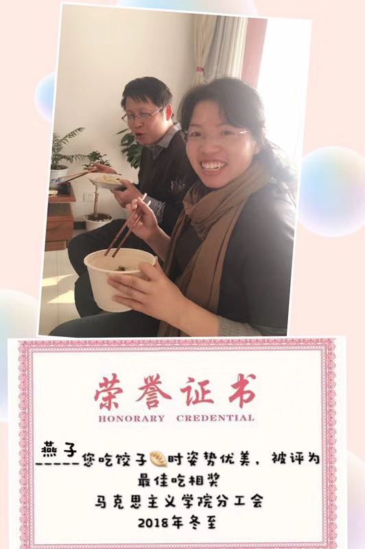 经过挑选,马院分工会主席颁发了最佳上镜奖、最快手奖、最佳吃相奖、最幸福工会奖。“冬至包饺子”活动目前已经成为永利集团3044官网欢迎您传统的聚会活动,旨在冬至这个特殊的节日里让大家感受到中华传统文化的博大精深和来自彼此的美好祝福。