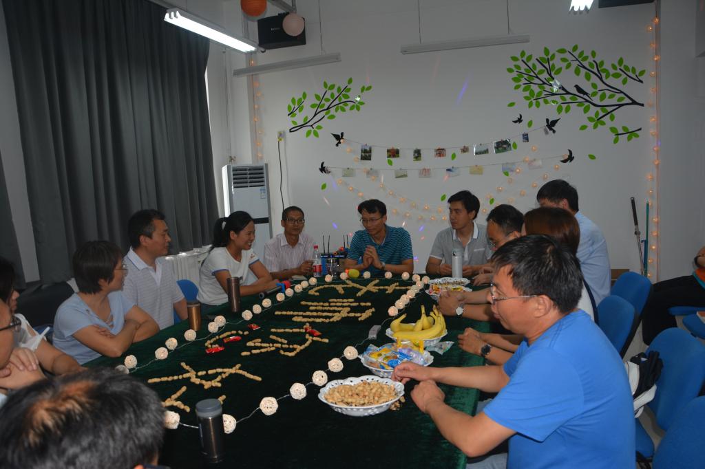 老师们在茶话会上畅谈“庆祝新中国七十华诞,弘扬新时代尊师风尚”。弘扬尊师重教的社会风尚,不是仅靠规定就能迅速养成,还需要广大教师们自身的努力。为人师表,理应坚守教书育人本分,心怀仁爱之心,甘守三尺讲台,为青年一代打牢知识根基。新时代的教育工作者,更是要求不忘初心,牢记使命,忠诚党和人民的教育事业,为推动教育事业发展不懈奋斗。多位老师还引吭高歌,庆祝第35个教师节。我院研究生还为老师们送上了教师节蛋糕,祝各位老师身体健康,万事如意!