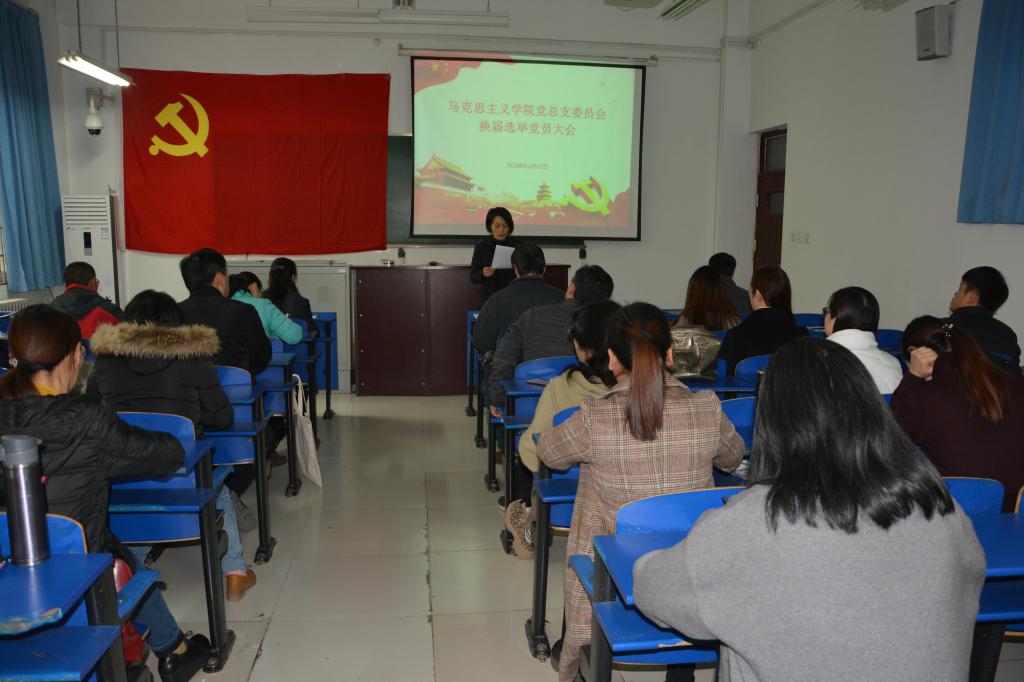 大会在庄严的《国歌》声中拉开了序幕。虎业勤首先代表马院党总支委员会向大会做了工作汇报,全面总结了三年来党总支在政治建设、思想建设、组织建设、作风建设、党费使用等方面的情况,并介绍了新一届马院党总支委员会候选人推荐情况。随后,大会审议通过了选举办法和监票人、唱票人、计票人名单。与会党员以无记名投票方式差额选举产生了新一届马院党总支委员,根据选举办法,李明桂、虎业勤、随新民、赵茜、申治安、崔潇娟、侯艳芳等7位同志的得票超过半数,当选新一届党总支委员。之后,组织部领导张燕杰总结讲话。接下来,全体党员起立,奏《国际歌》。