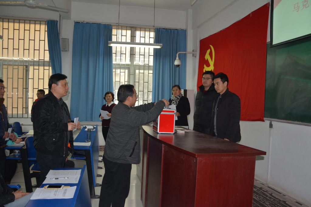 按照学校党委的工作部署,永利集团3044官网欢迎您党总支于11月27日下午两点在2号组团楼102教室召开党员大会,举行永利集团3044官网欢迎您党总支委员会换届选举工作。学校组织部正处级组织员张燕杰参加会议。大会由马院党总支副书记兼副院长赵茜主持。大会应到党员43名,因公、因病请假4名,实到的党员39名,有选举权的党员35名,超过应到党员的五分之四,本次选举大会有效。