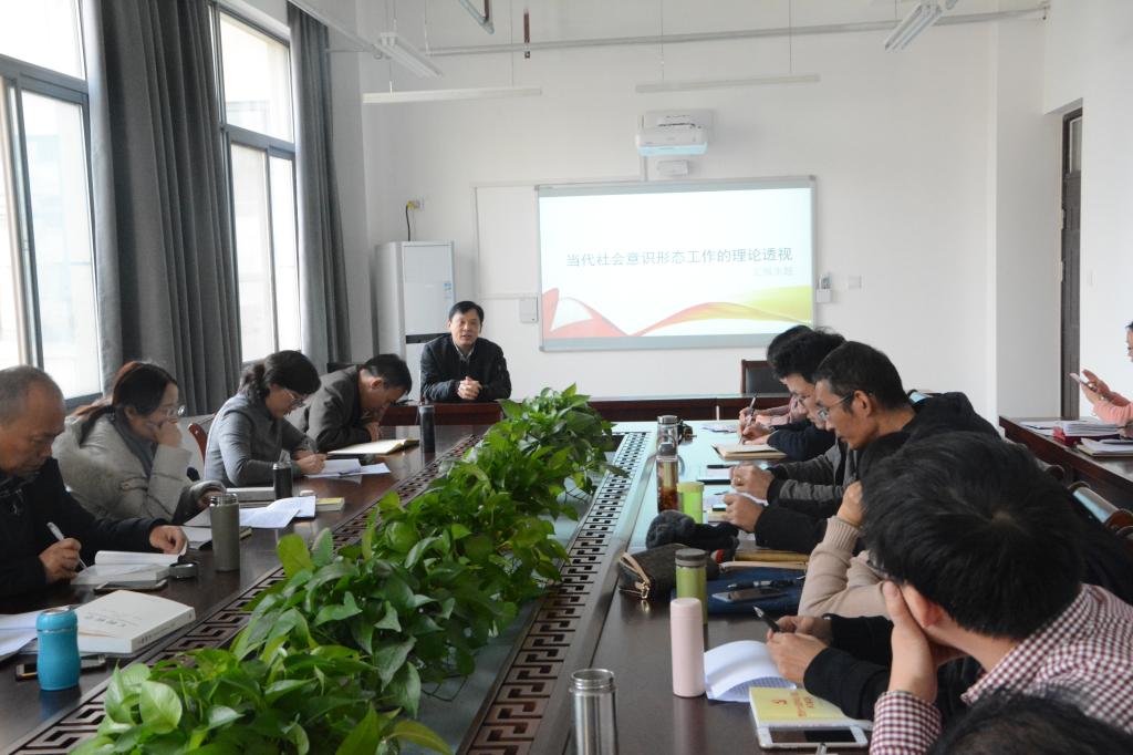 2019年12月10日下午,永利集团3044官网欢迎您在3号组团楼C601会议室以“当代社会意识形态工作的理论透视”为主题开展了意识形态工作研判,全体教职工参会。学院党总支书记虎业勤主持会议。