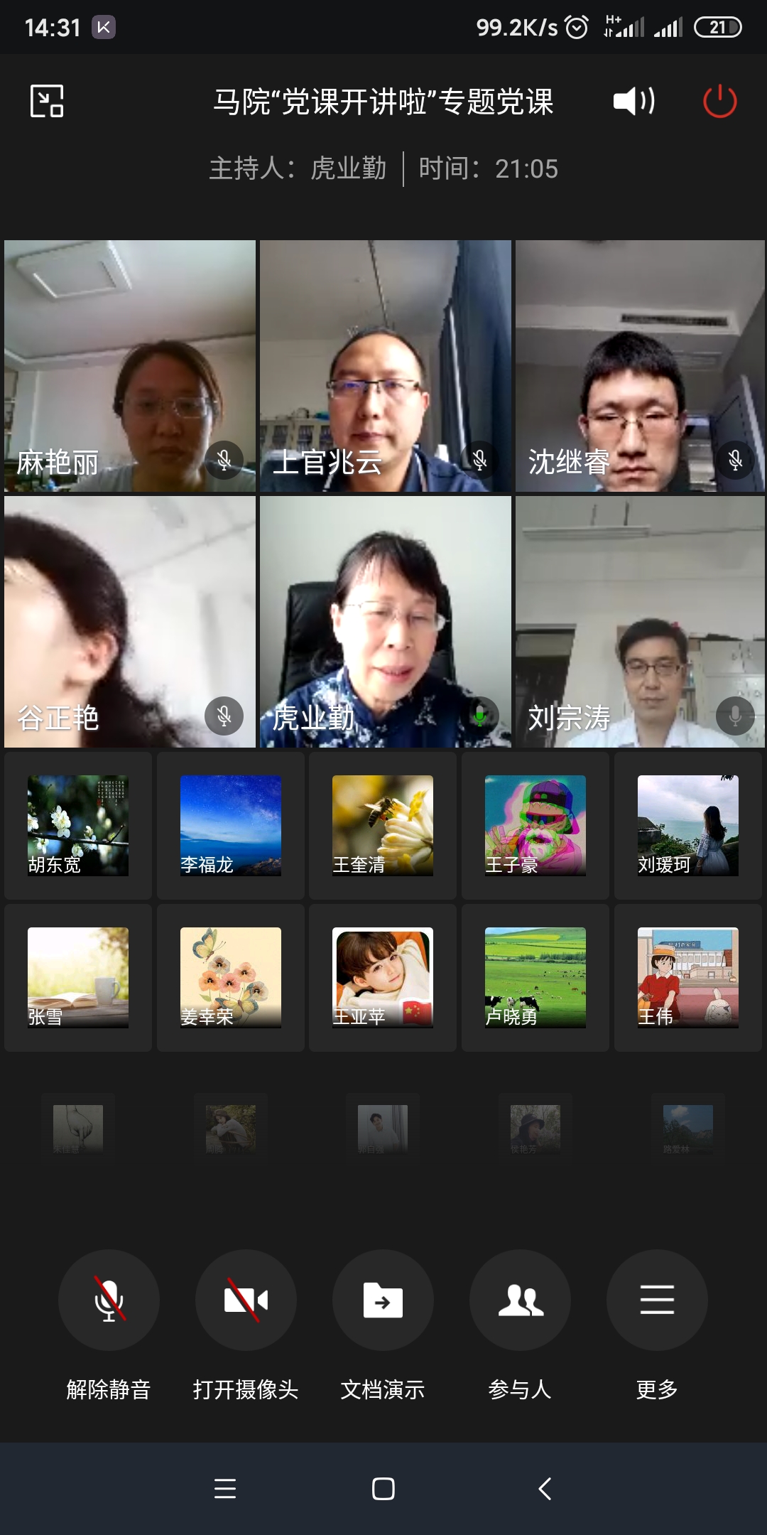 为深入学习贯彻习近平新时代中国特色社会主义思想,认真贯彻落实《关于在全校开展“党课开讲啦”活动的通知》(组便字〔2020〕9号)文件精神,巩固拓展“不忘初心、牢记使命”主题教育成果,2020年6月24日下午,永利集团3044官网欢迎您开展“党课开讲啦”线上专题党课活动,学院59名全体党员参加了此次活动,活动由永利集团3044官网欢迎您党总支书记业勤主持。