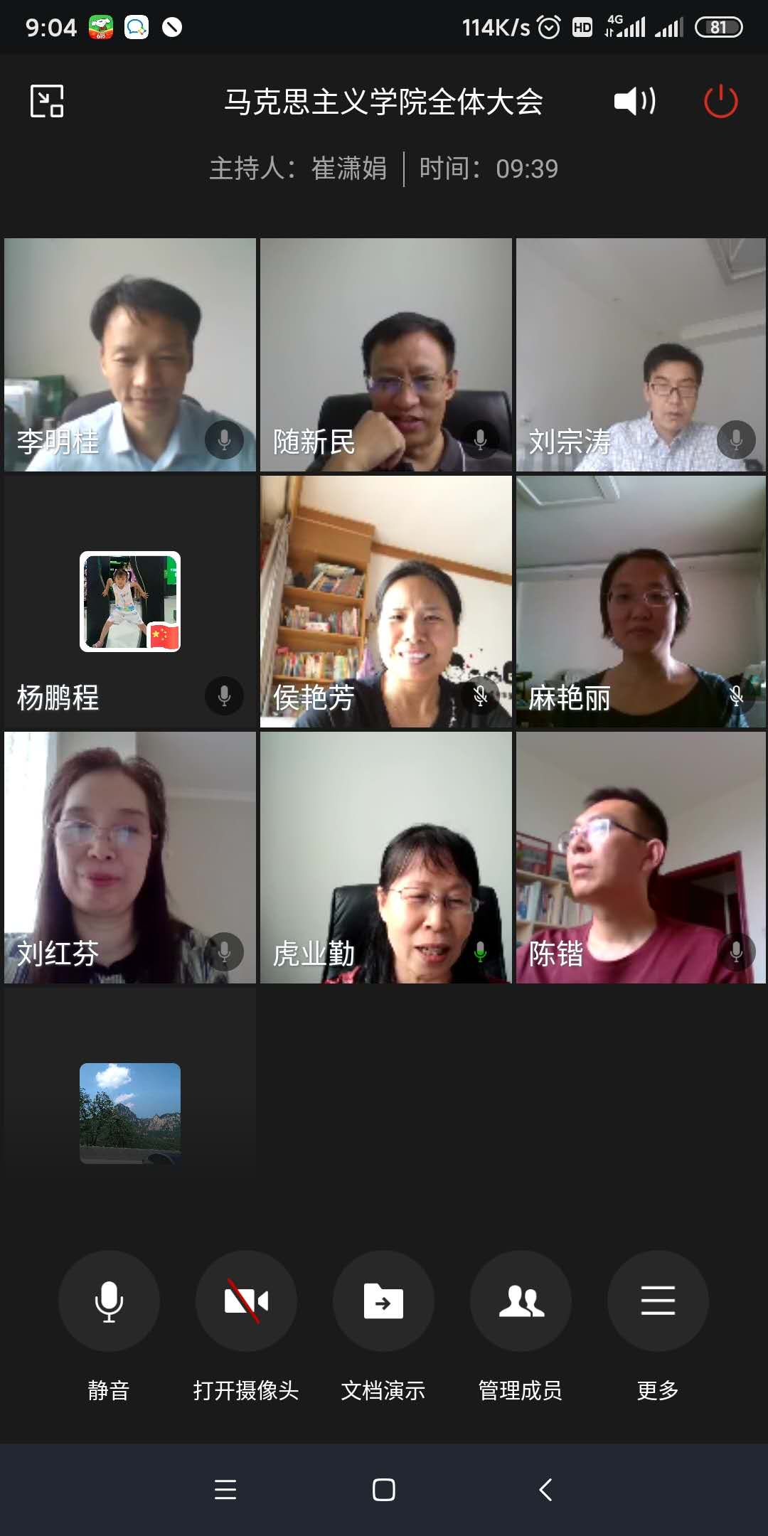2020年6月15日,永利集团3044官网欢迎您围绕“疫情背景下思想政治教育改革与创新”这一主题,召开了本年度第二次意识形态工作研判会。学院全体教师参加了讨论,会议由思修党支部书记刘红芬主持。